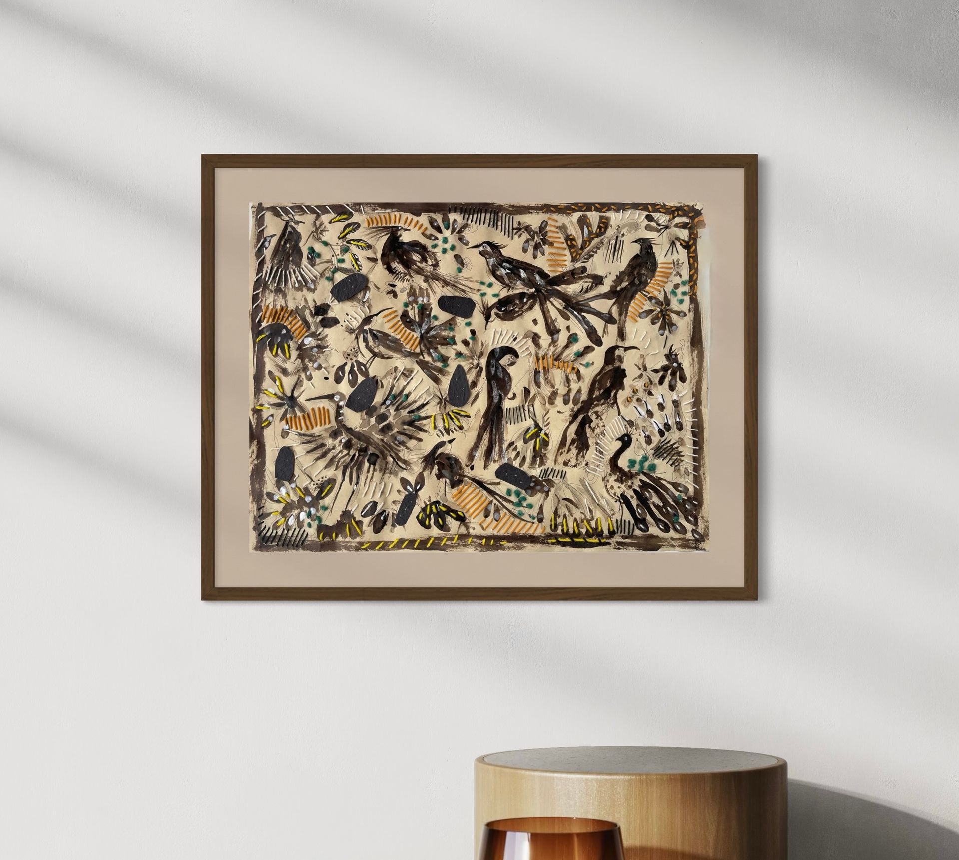 She practices automatic drawing with Indian ink, a technique that she has