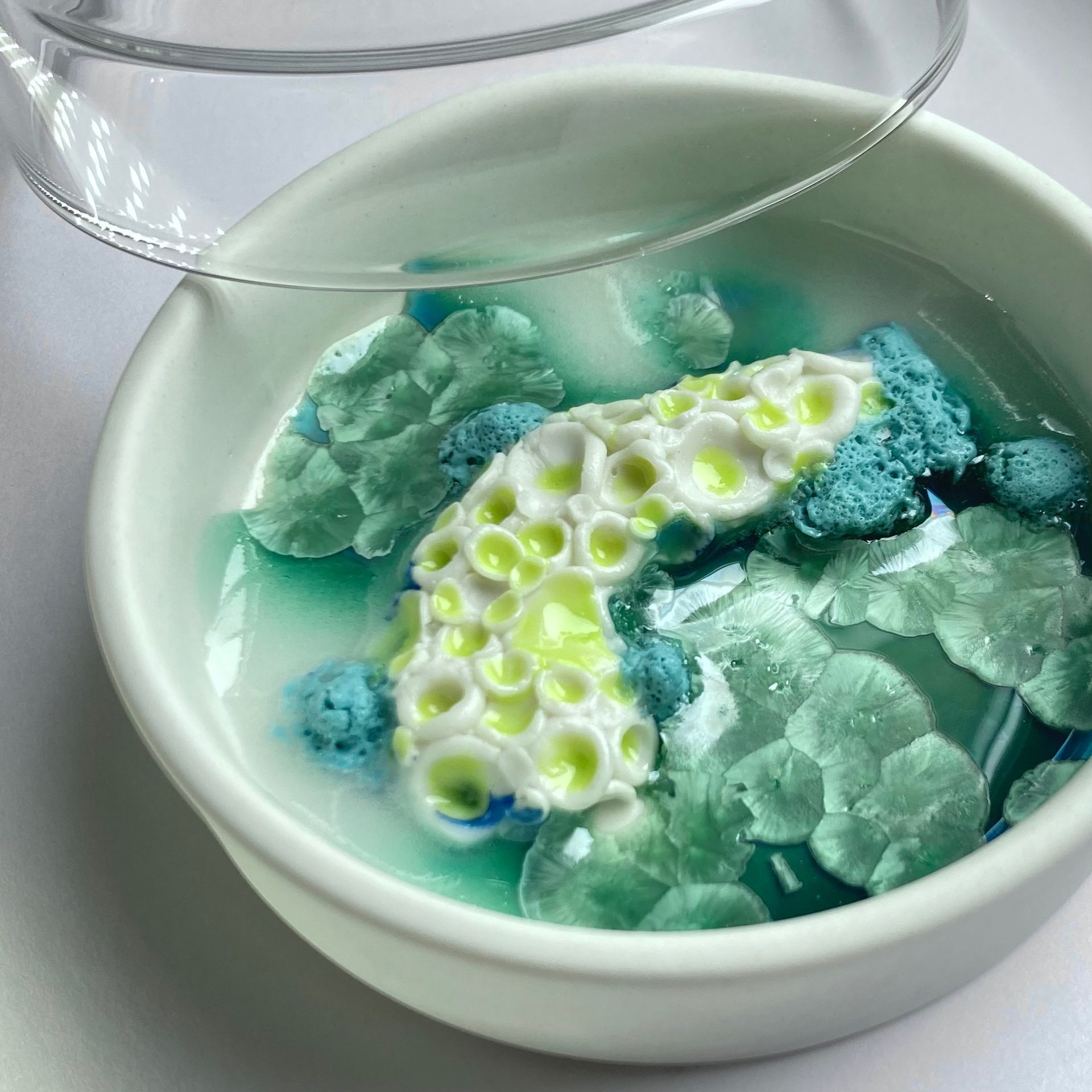 Translucent porcelain structures and natural stories, for hybrid pieces developed from plant membranes. Between art and science, materials interact to restore forms, capture them and then stabilize them.