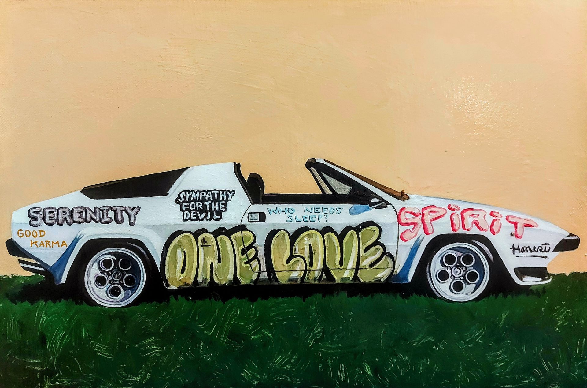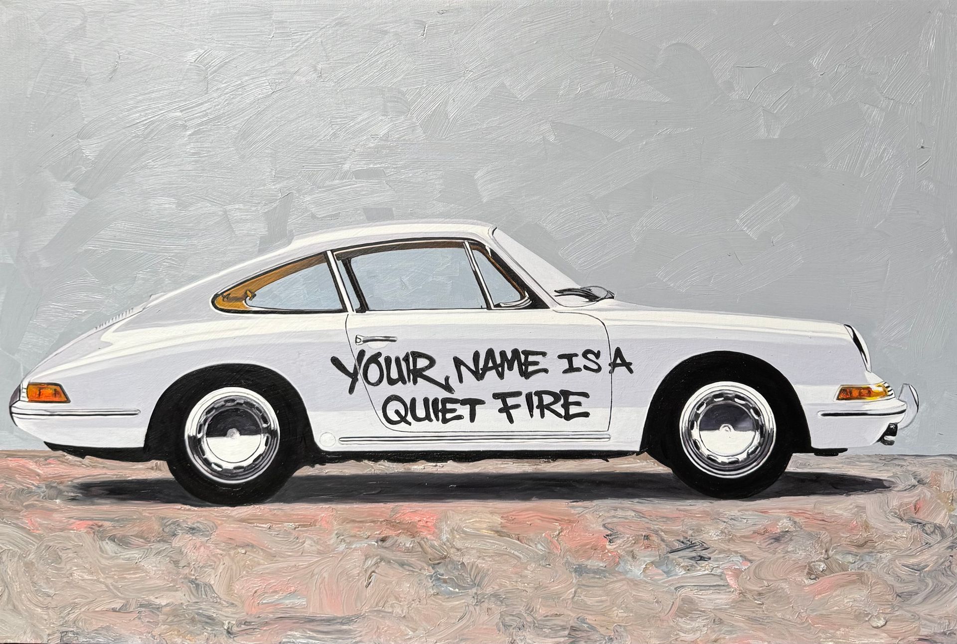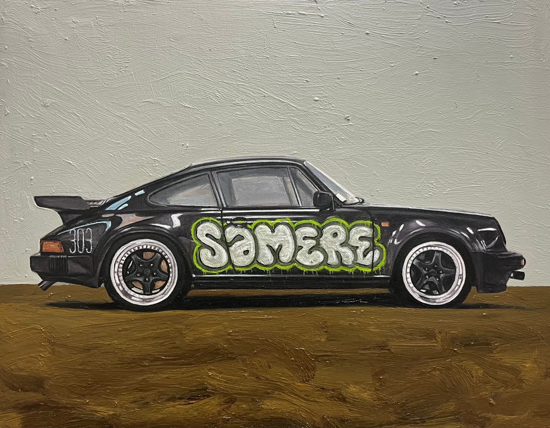 Amoncèlements de peinture à l’huile et flaques de liquin épandus sur la palette, toiles enduites de gesso, chevalet reposant sur un tapis modeste ainsi que quelques néons charpentent son atelier. À main levée, l’artiste dessine les premières lignes de la composition, s’aidant d’un quadrillage en tiers et d’un bâtonnet de fusain. À cette étape, il fait abstraction de ce qui dérange, allant jusqu’à soustraire l’environnement autour du sujet. Si les objets de seconds rôles racontent une histoire, les vides accompagnateurs guident le regard sur l’essentiel.